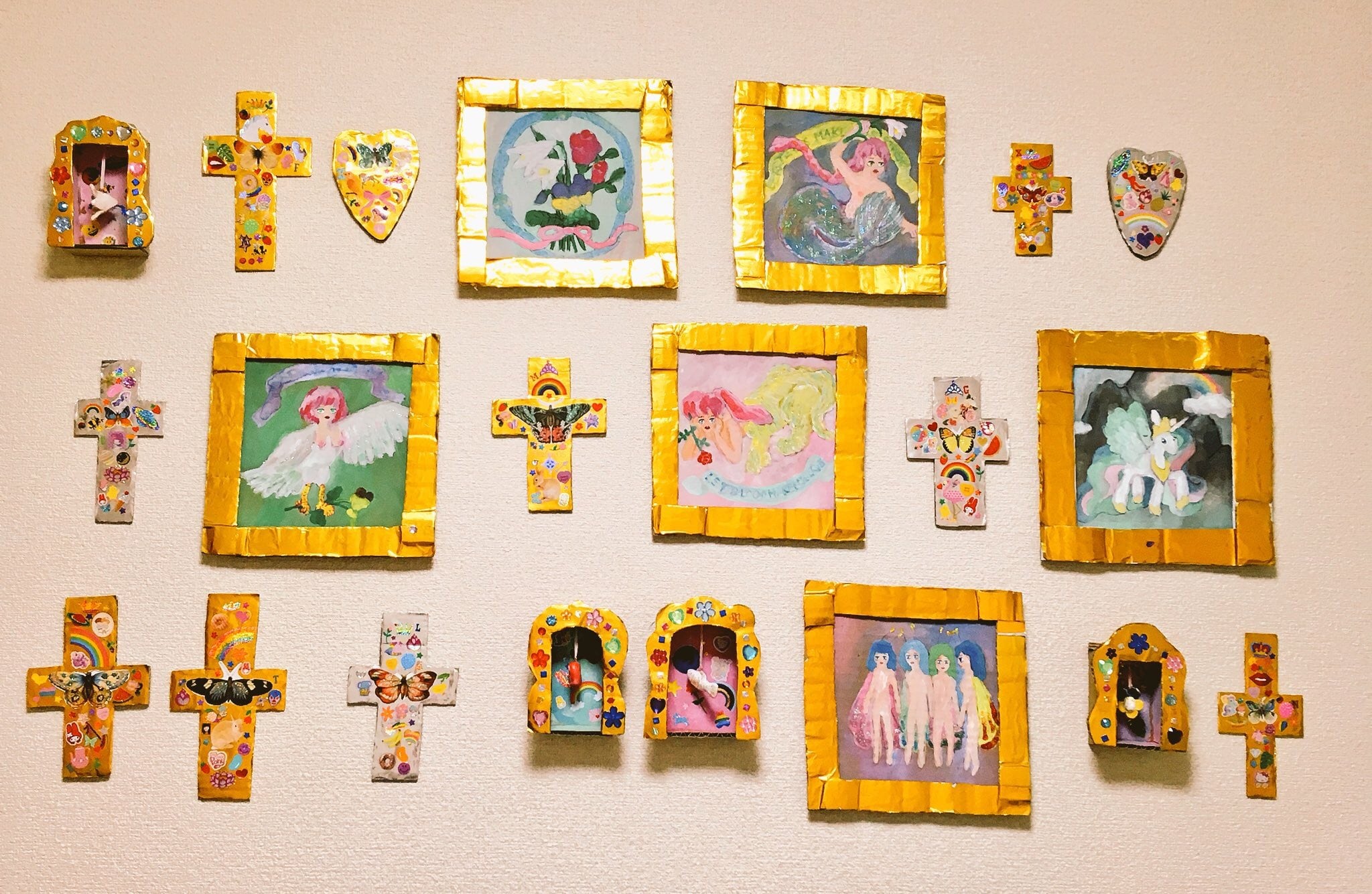 imaginary daughters信仰のお祭りの飾りです。ひっつき虫などで壁に飾って、信仰のよりどころとしてください。ダンボール製。10㎝〜15㎝